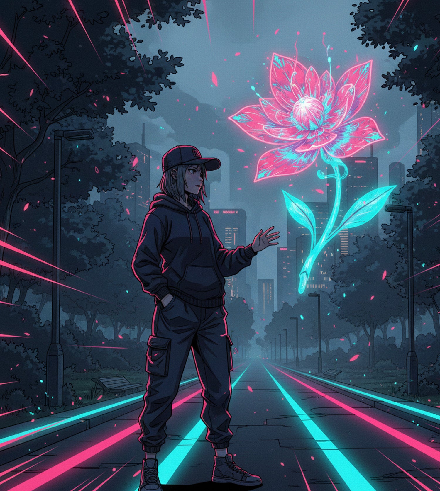 Unsere Mission: Wir bringen die Energie von Webtoons und Gaming auf die Straße. Unsere Designs sind Momentaufnahmen einer Welt aus Neon, Schatten und Stahl.